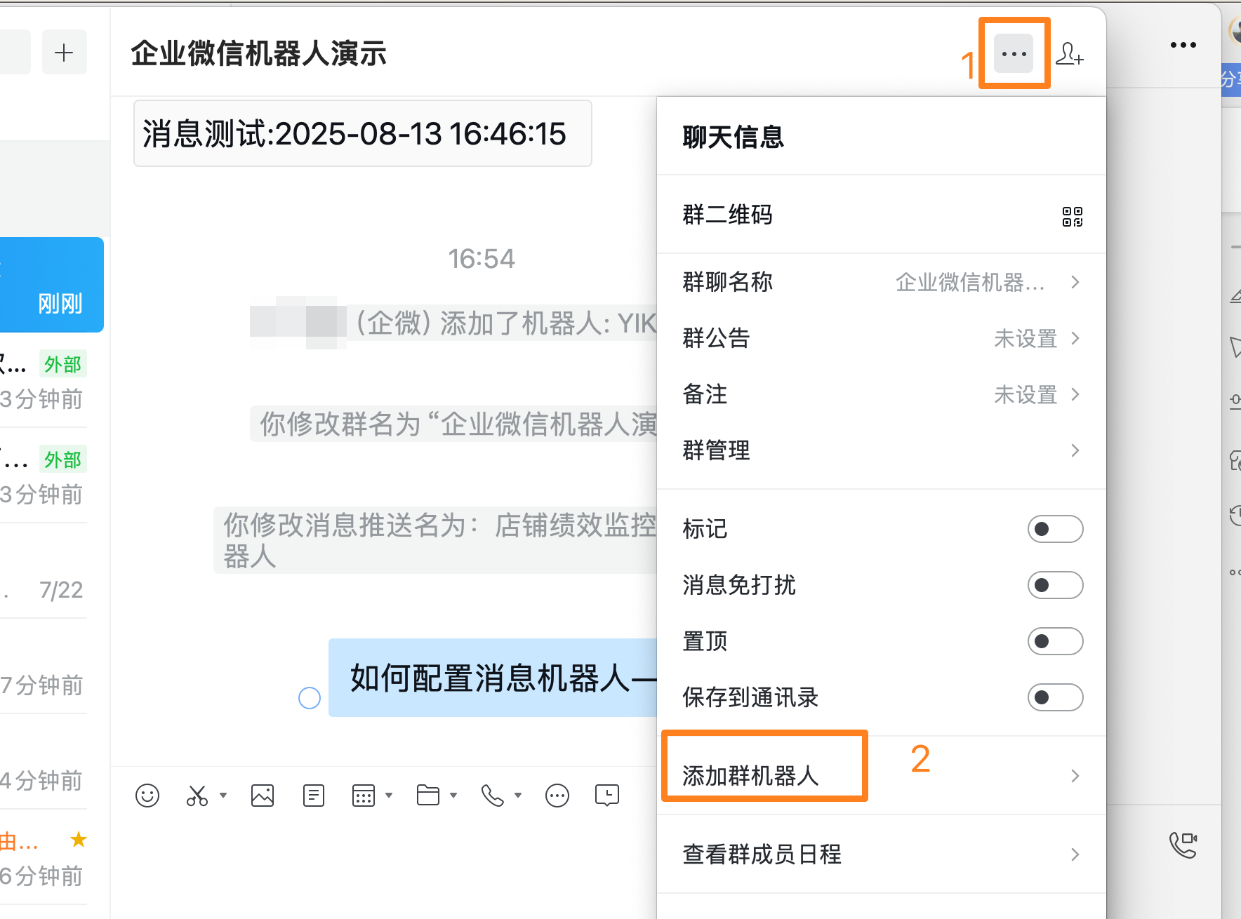 新建企业微信群或打开企业微信群:群成员必须全部是企业微信用户