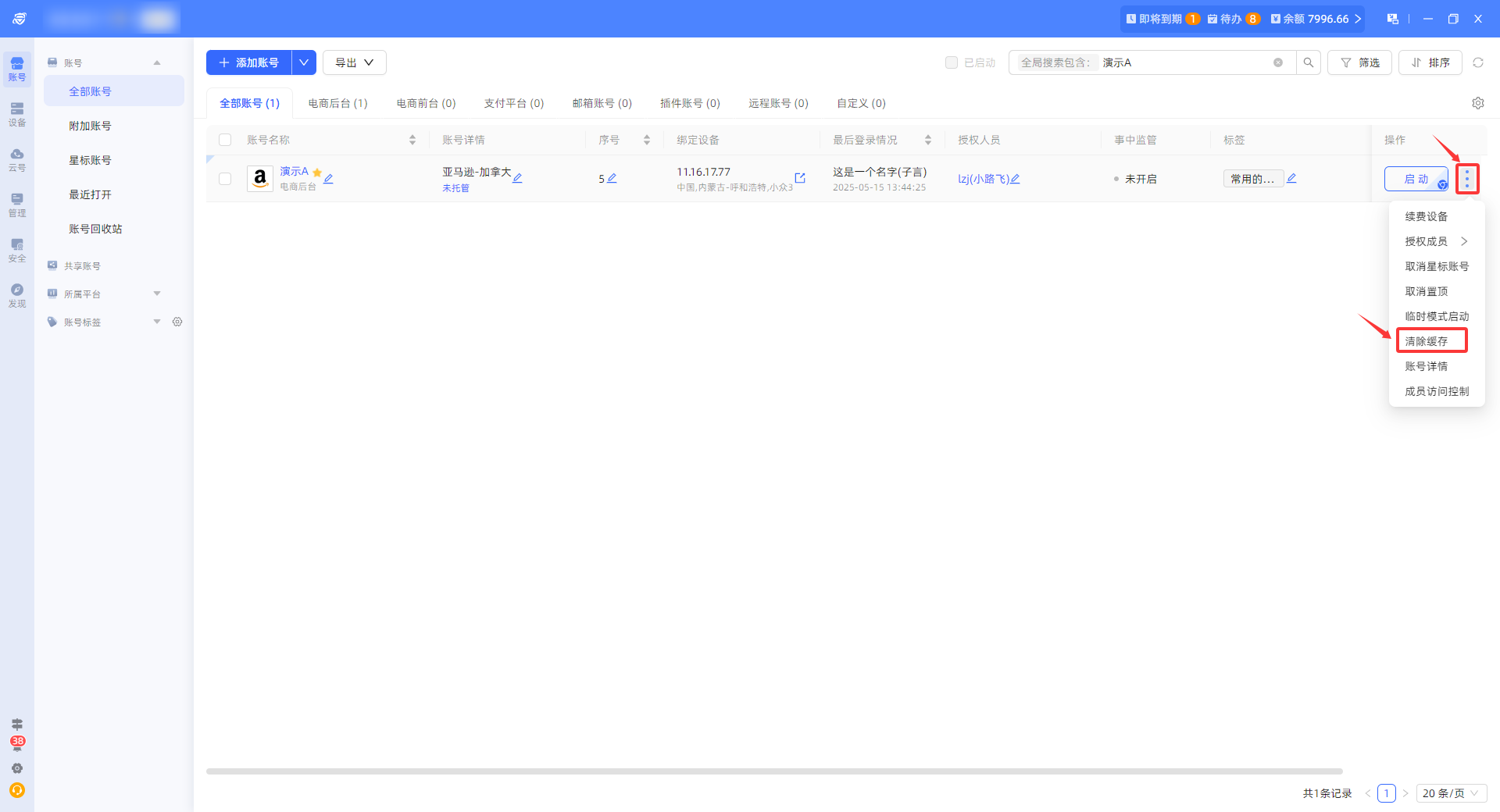 (3)找到您需要清除缓存的账号。点击【更多-清除缓存】
